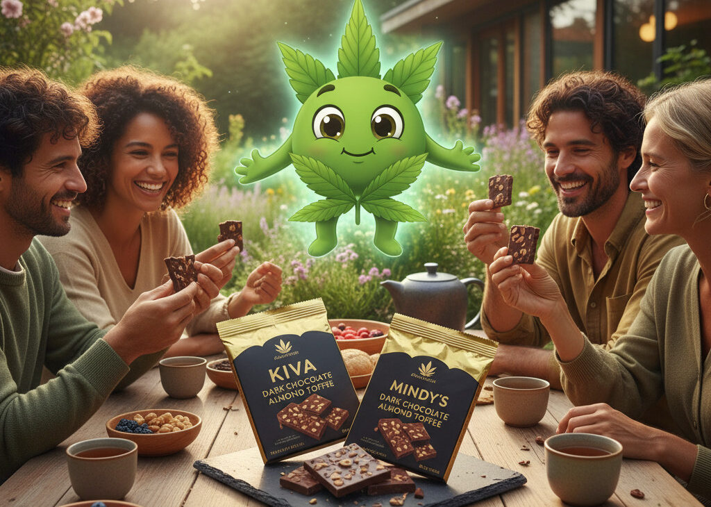 | Mindy’s Edibles (Dark Chocolate Almond Toffee) | Varies by product; check label | $18–$30 | Milk chocolate with caramel, almond, and toffee | Very high — chef-crafted flavor and texture |